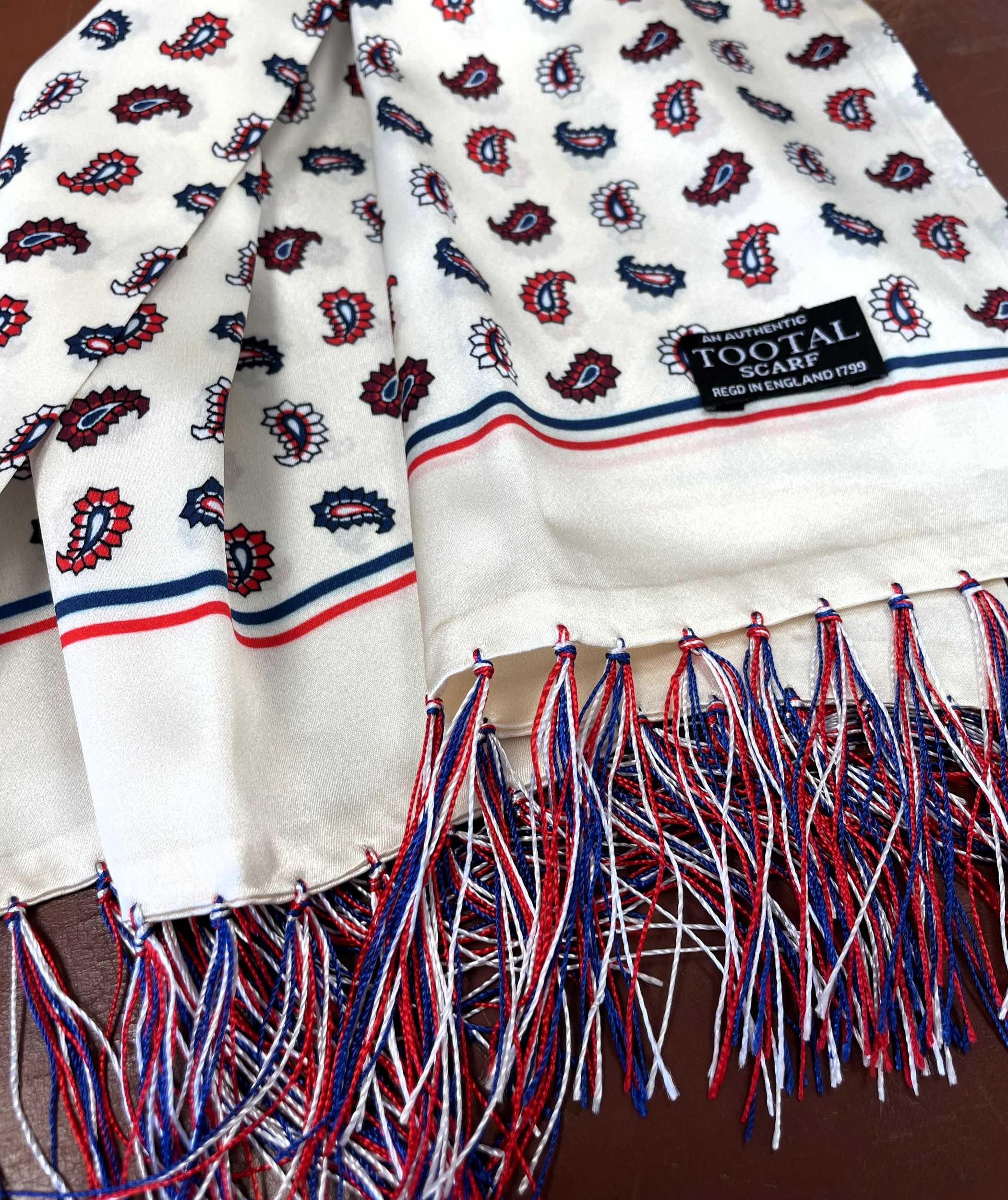 Tootal Ecru Paisley with Retro Border Design Silk Scarf