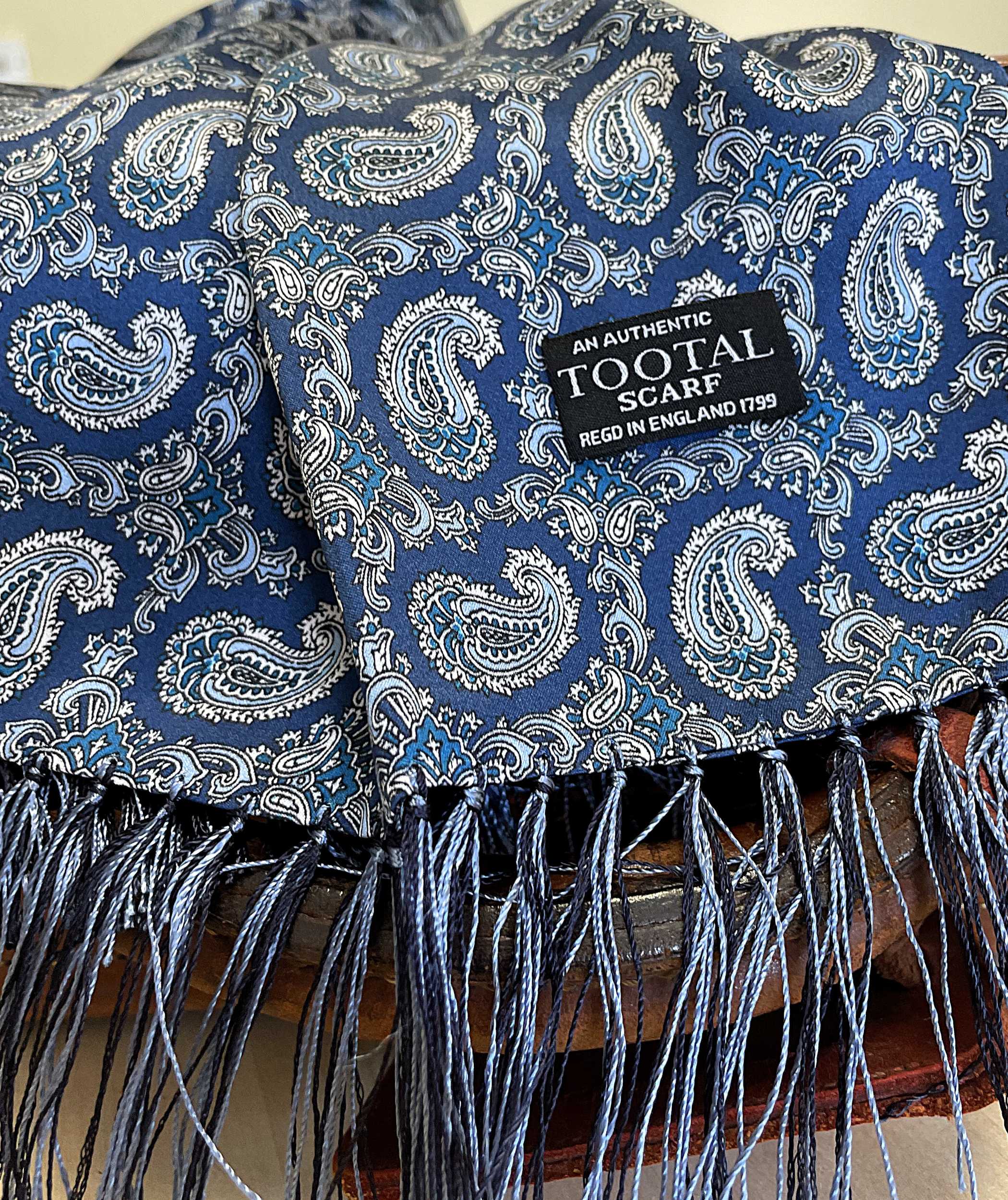 Tootal Navy Blue Paisley Silk Scarf – Timeless Paisley Pattern in Pure Silk