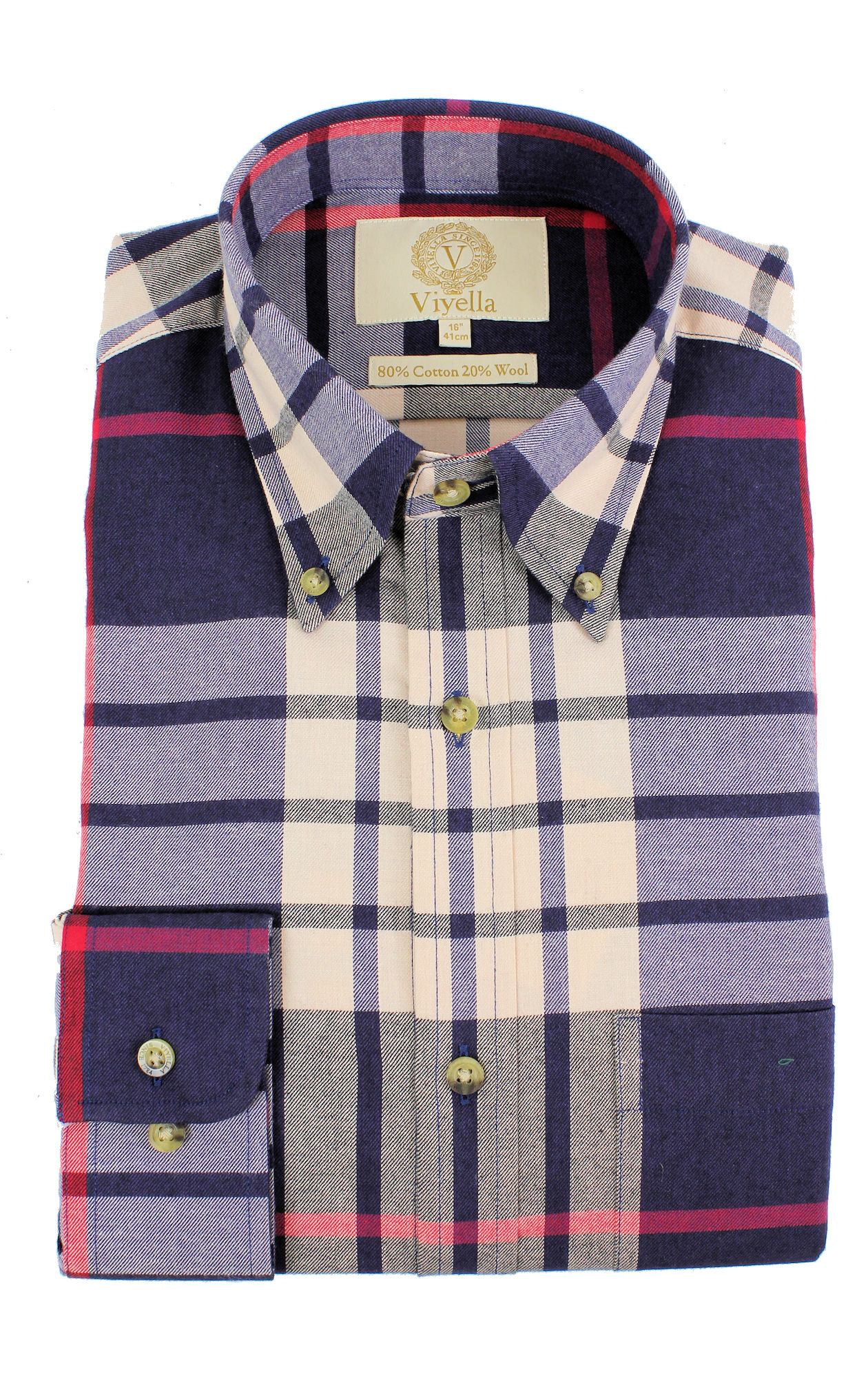 Viyella 80% Cotton 20% Wool House Check Large Tartan Classic Fit Shirt with Button-Down Collar