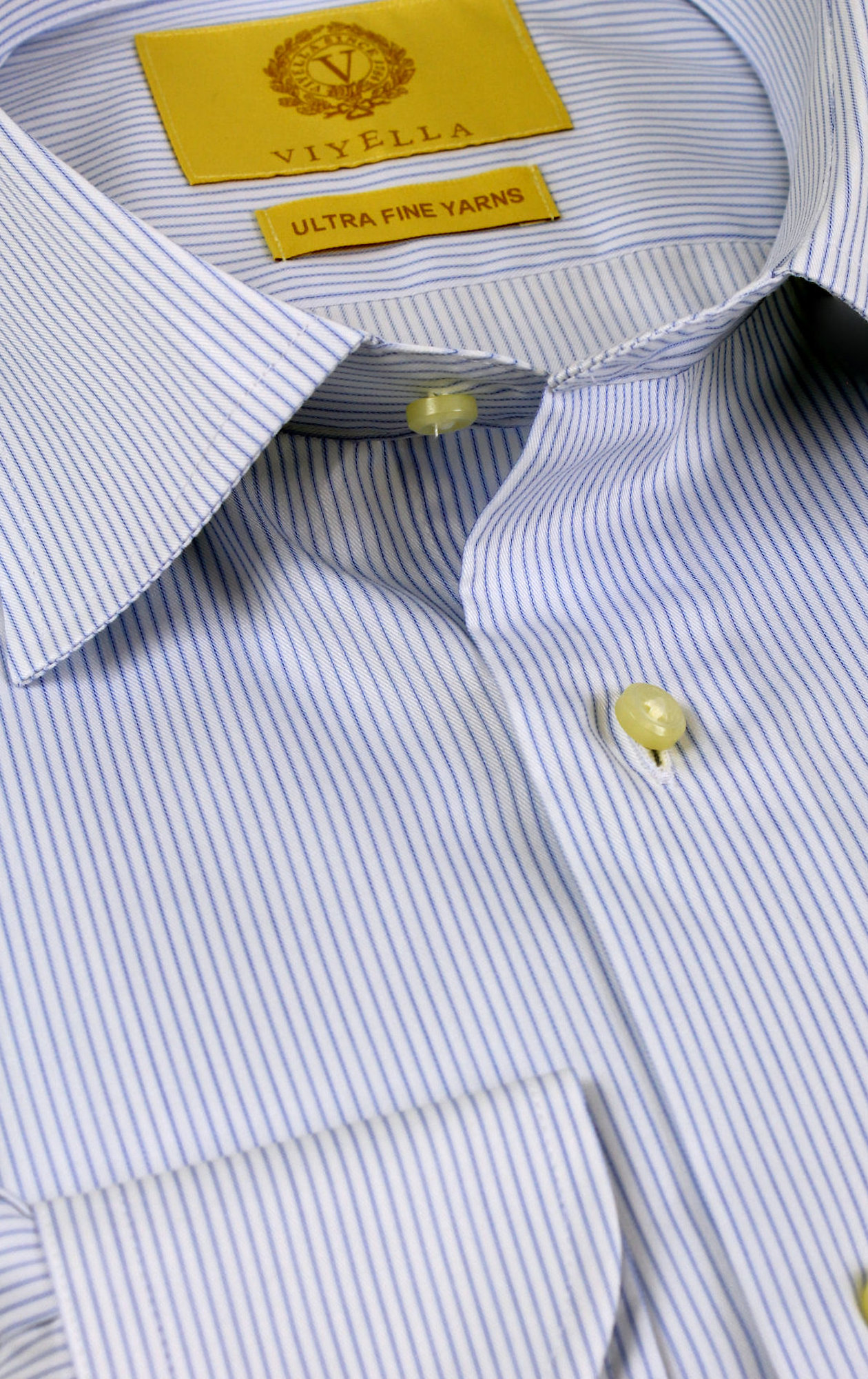 Viyella Blue Hairline Stripe Tailored Fit Cotton Formal Shirt