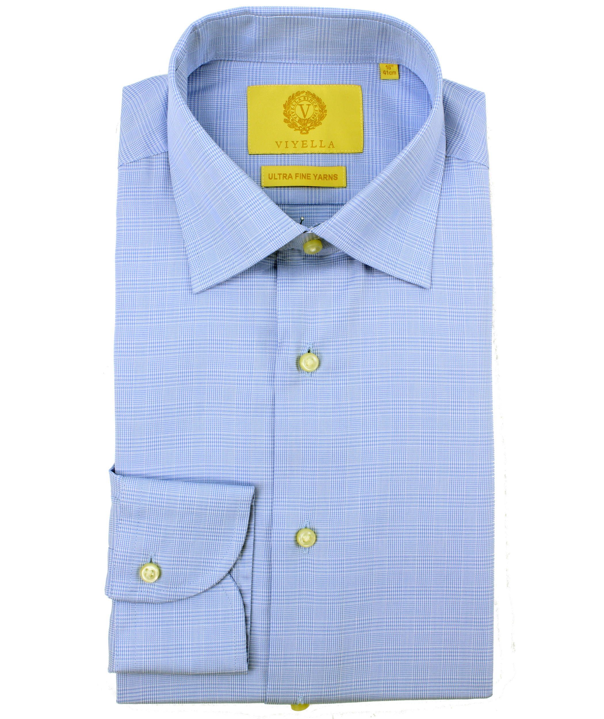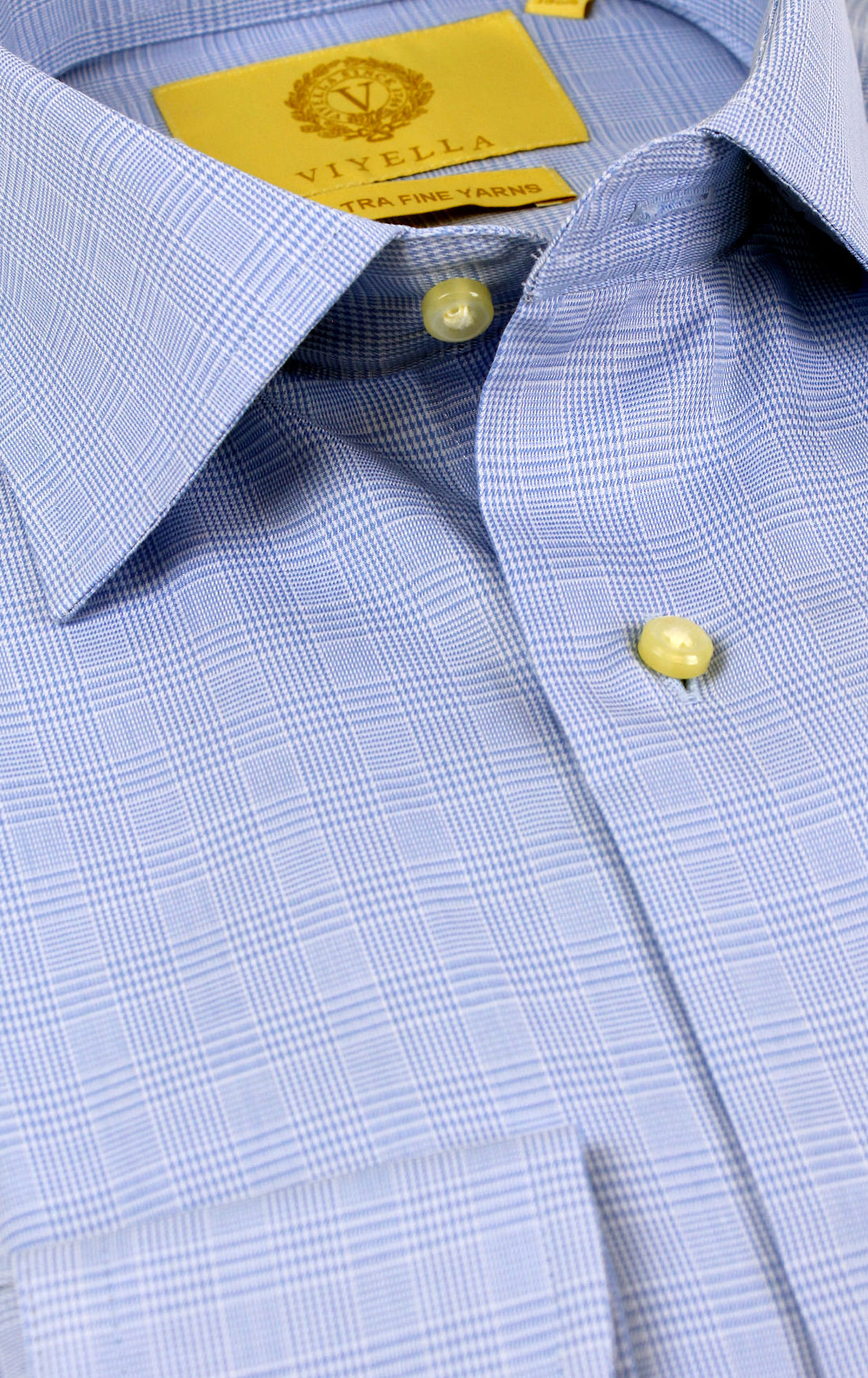 Viyella Blue Prince of Wales Check Tailored Fit Cotton Formal Shirt