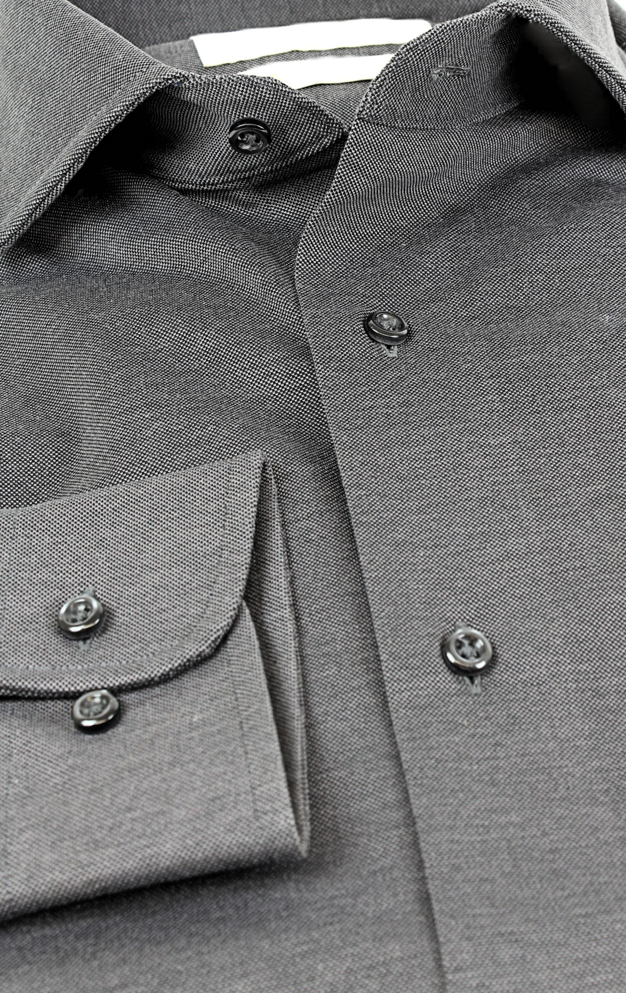 Crafted from high-quality cotton, the shirt provides natural stretch for ease of movement and a relaxed fit. The fabric undergoes a special finishing process, resulting in a soft, non-iron material that maintains a polished appearance throughout the day. The deep charcoal hue adds versatility, making it suitable for both formal and smart-casual occasions.