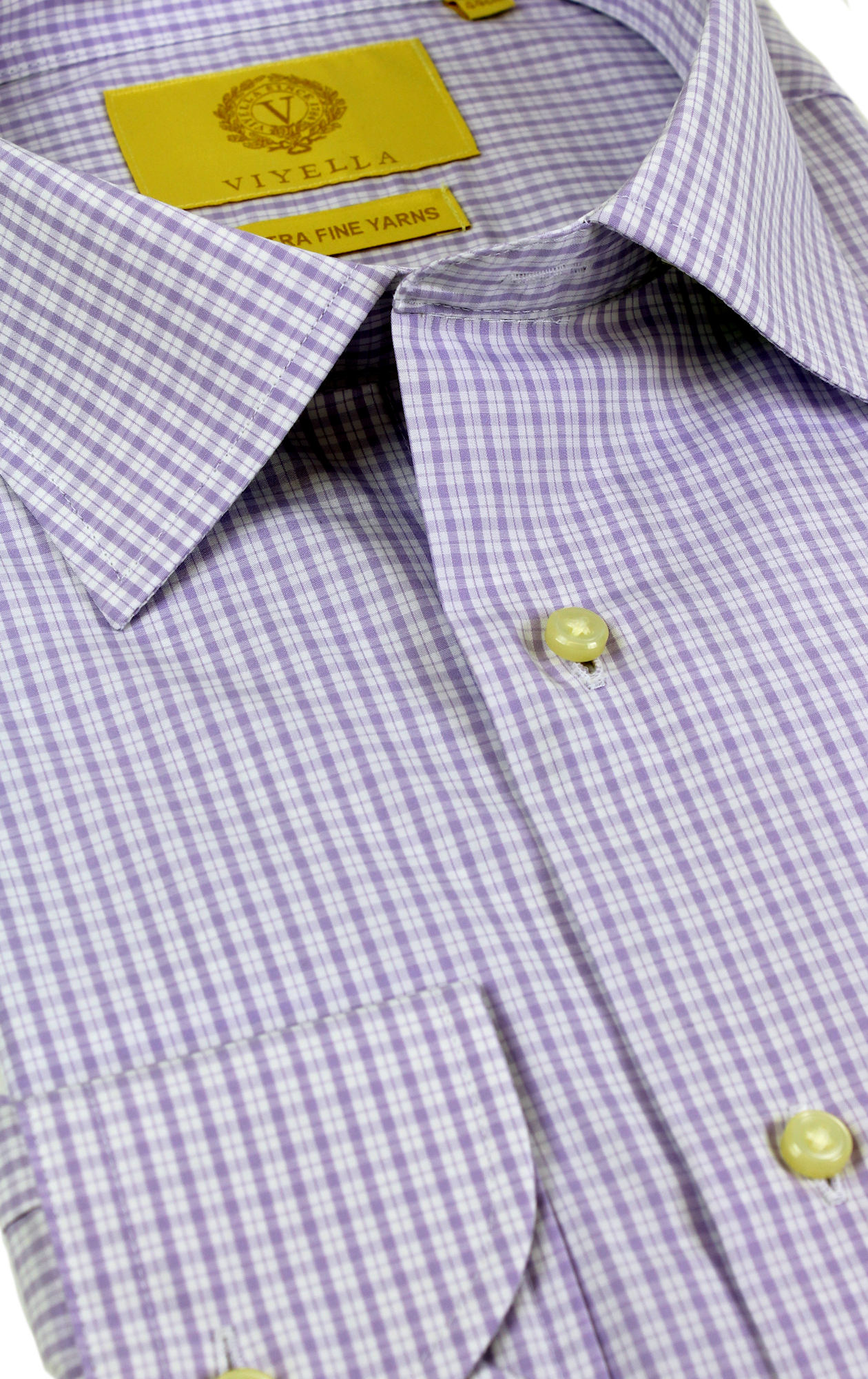 Viyella Lilac Mini Check Tailored Fit Cotton Formal Shirt