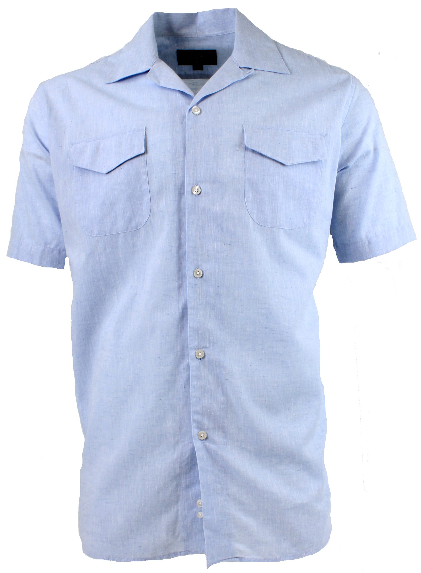 Viyella Plain Blue Linen Classic Fit Short Sleeve Shirt