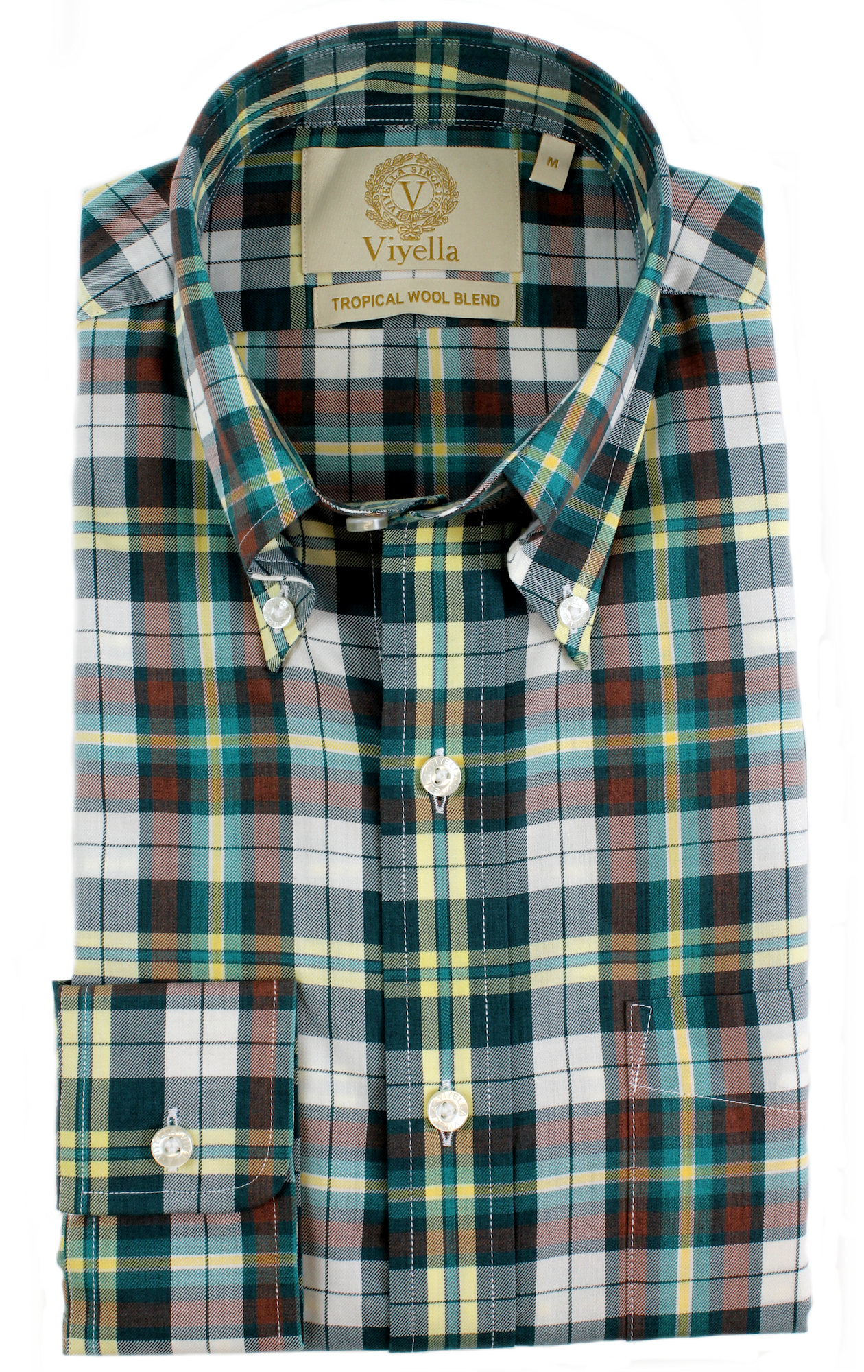 The Viyella Tropical Weight Cotton & Wool Blend Dartmouth Green Plaid Shirt draws on authentic British heritage, originally developed as a “Service Shirt” for armed forces operating in the warm climates of North Africa and Asia. Designed for performance in the heat, it combines timeless styling with advanced natural fabric technology.